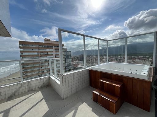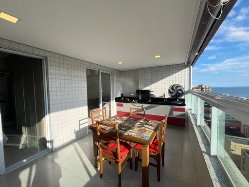 Apartamento tipo cobertura com 140 m2 Vista mar e vista montanhas Pavimento superior : Acesso ao elevador, sala espaçosa, terraço e solarium com ofurô, espaço gourmet já com a churrasqueira e em integração com a cozinha, e área de serviço. Pavimento inferior: 3 suítes (sendo 1 com varanda envidraçada) 2 vagas Prédio com portaria, circuito de monitoramento interno e elevadores. Ampla área de lazer: Piscina com borda infinita, mini quadra poliesportiva, espaço gourmet, espaço fitness, espaço kids, salão de festas, salão de jogos e bicicletário. 50 mts da praia Bairro Caiçara Agende a sua visita ! *valores e disponibilidade sujeito a alterações