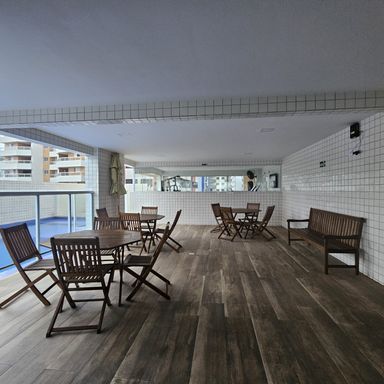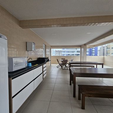 O apartamento possui 2 vagas de garagem e está a apenas 200 metros da praia, em uma localização privilegiada próximo a várias opções de comércio, e próximo ao Centro Comercial Aviação. O condomínio dispõe de completa área de lazer.