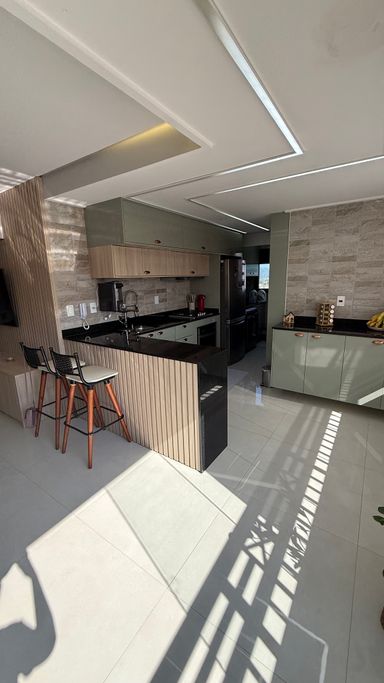 - 2 dormitórios sendo 2 suítes, 1 lavabo, sacada integrada, sala 2 ambientes, cozinha totalmente equipada e dormitórios já com planejados, 2 vagas de garagem demarcadas.