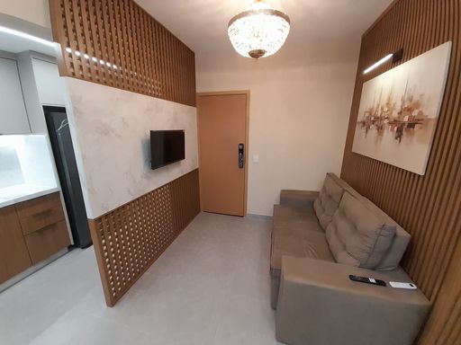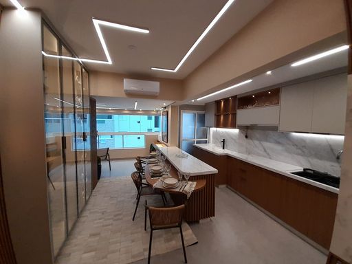 Apartamento à venda em Praia Grande no bairro Vila Caiçara, localizado em prédio de frente para a praia, oferecendo a comodidade de viver próximo ao mar. Este imóvel conta com 2 quartos, sendo 1 suíte, 1 banheiro social, sala com ambientes integrados e cozinha americana, além de sacada gourmet com envidraçamento e fechadura digital. Com 77 metros de área útil, o apartamento será vendido mobiliado com móveis planejados, pronto para morar. O imóvel aceita financiamento direto, proporcionando facilidade na aquisição.