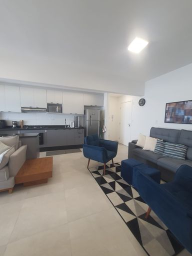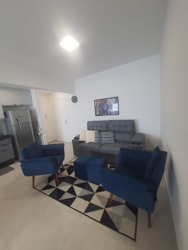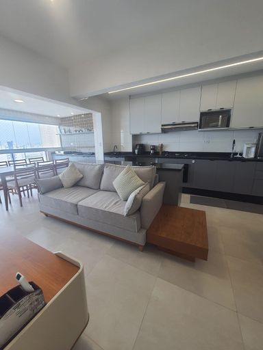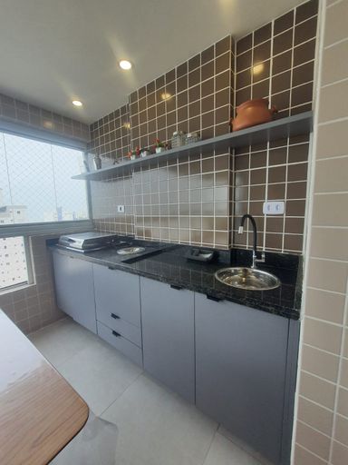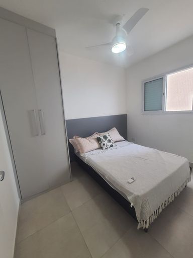Apartamento com 2 dormitórios, sendo 1 suíte, 1 vaga de garagem, localizado em andar alto, garantindo uma agradável vista lateral para o mar e ótima ventilação natural.