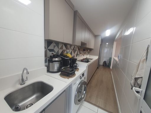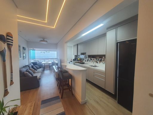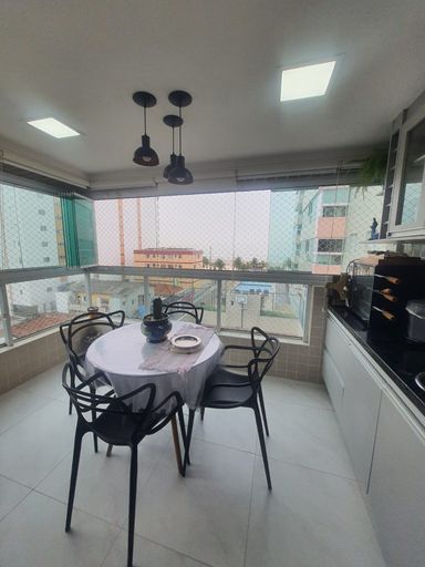 Apartamento à venda no bairro Mirim em Praia Grande com 2 dormitórios, sendo 1 suíte e um quarto adaptado para visitas, oferecendo conforto e praticidade para o dia a dia ou para momentos de descanso no litoral. O imóvel conta com cozinha equipada com armários planejados e fogão de indução, proporcionando funcionalidade e modernidade ao ambiente. A sacada é envidraçada, permitindo aproveitar melhor o espaço e contemplar uma agradável vista para o mar e também para a montanha. Os banheiros possuem box instalados e o apartamento dispõe ainda de 1 vaga de garagem.