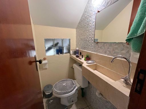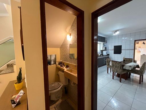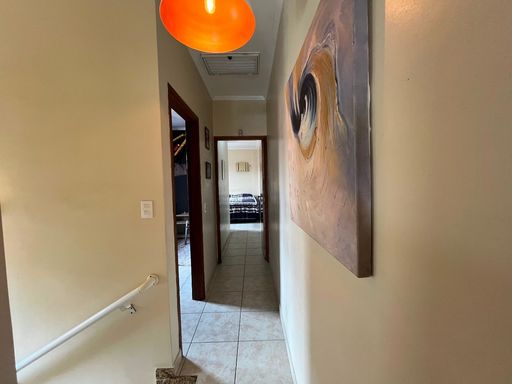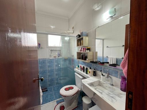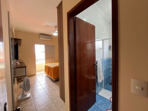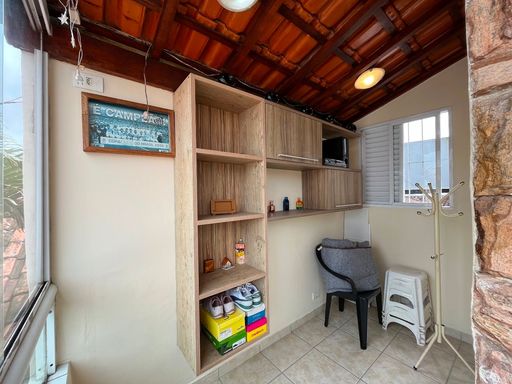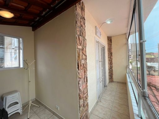 No piso superior temos 3 quartos: 1 suíte com sacada envidraçada de frente (vista livre) ; 1 banheiro social, 1 quarto e 1 suíte.