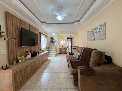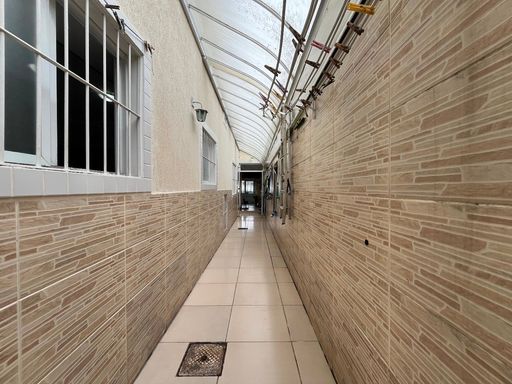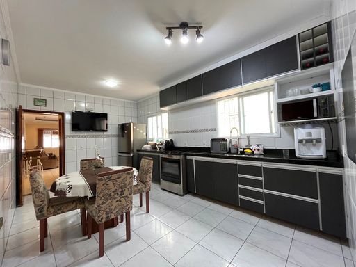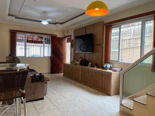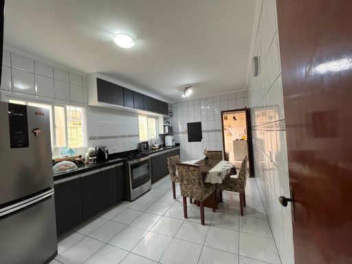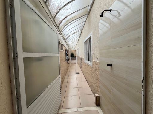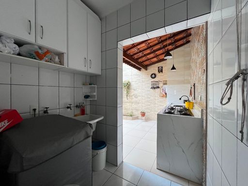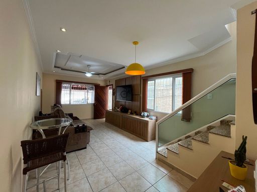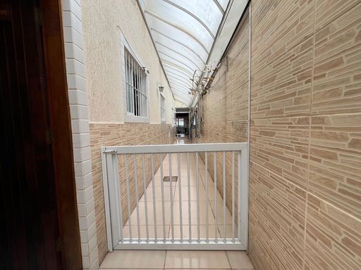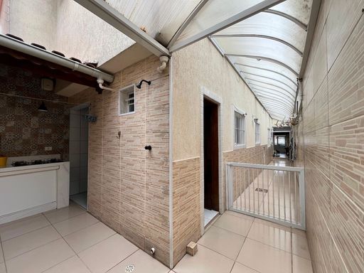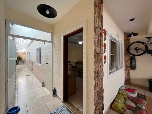 No térreo temos a sala, lavabo, cozinha, área de serviço, espaço gourmet com churrasqueira, lavabo no quintal, corredor lateral com acesso às 2 vagas de garagem.